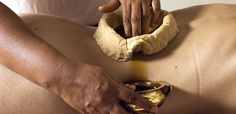 Die Khadivasti-Behandlung schließt eine Massage vor und nach der Behandlung mit ein.